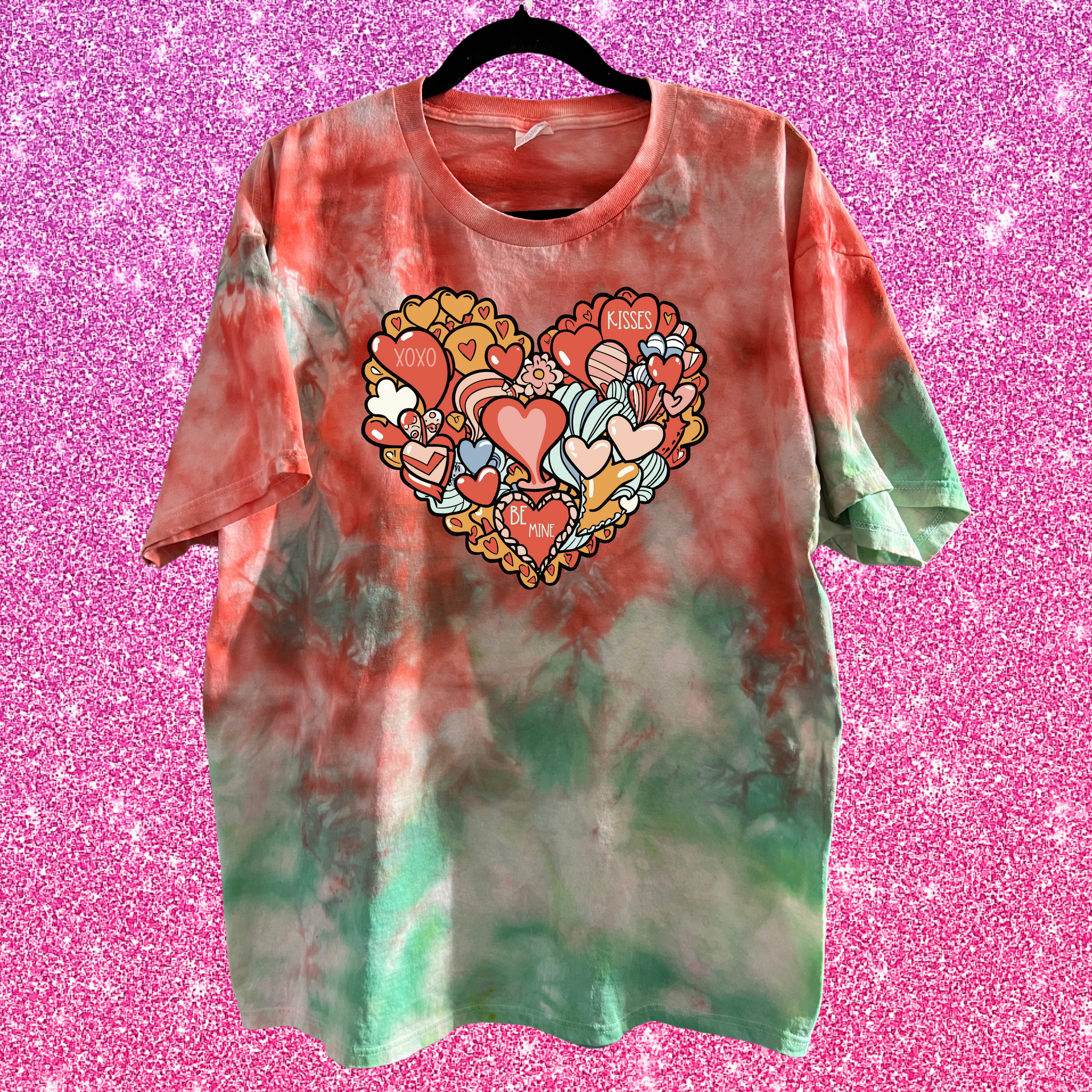 LOVE HEART DOODLE VALENTINE ICE DYE SHIRT & SWEATSHIRT